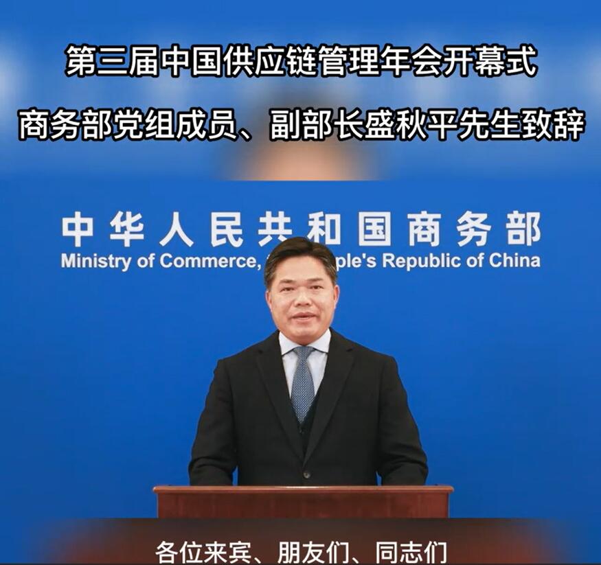 12月22日,由中華人民共和國商務部指導、中國物流與采購聯合會與廈門市人民政府聯合主辦的2022第三屆中國供應鏈管理年會在福建廈門舉行。商務部黨組成員、副部長盛秋平通過視頻方式出席并發表致辭,中國物流與采購聯合會副會長任豪祥出席并主持會議。中國物流與采購聯合會副會長蔡進,廈門市委常委、副市長黃曉舟出席并致開幕辭。