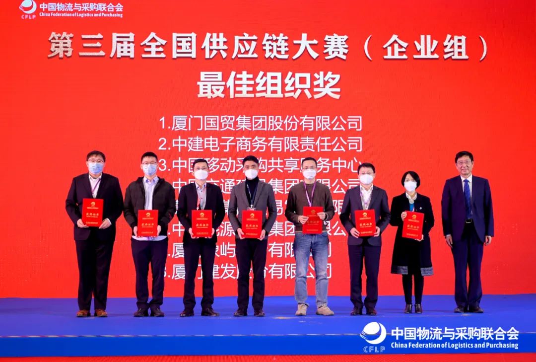 12月21日,由中國物流與采購聯(lián)合會主辦,中國物流與采購聯(lián)合會采購與供應(yīng)鏈管理專業(yè)委員會和中國物流與采購聯(lián)合會教育培訓(xùn)部承辦的“第三屆全國供應(yīng)鏈大賽(企業(yè)組)決賽”在廈門國際會展中心舉行。在“2022第三屆中國供應(yīng)鏈管理年會”主論壇上,舉行了頒獎儀式。中國物流與采購聯(lián)合會副會長任豪祥、副會長蔡進(jìn)、會長助理胡大劍出席頒獎儀式并為獲獎代表頒獎。決賽共產(chǎn)生了一等獎14名,二等獎 21名,三等獎35名,以及8個最佳組織獎。