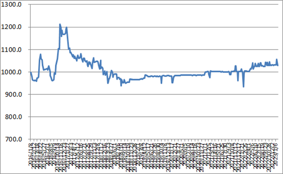 圖1 2016-2023年各周中國公路物流運價指數
