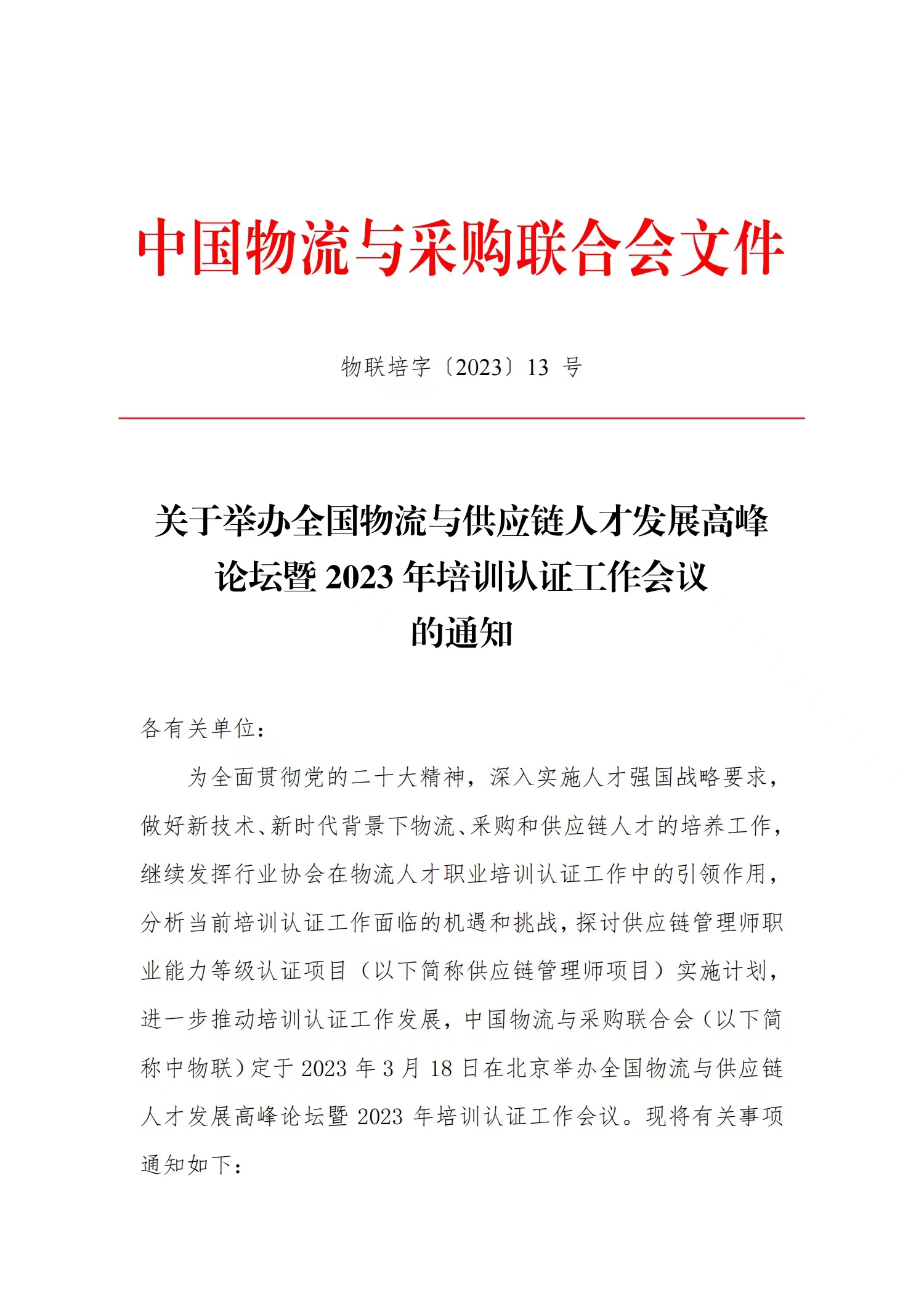 關(guān)于舉辦全國(guó)物流與供應(yīng)鏈人才發(fā)展高峰論壇暨 2023年培訓(xùn)認(rèn)證工作會(huì)議的通知