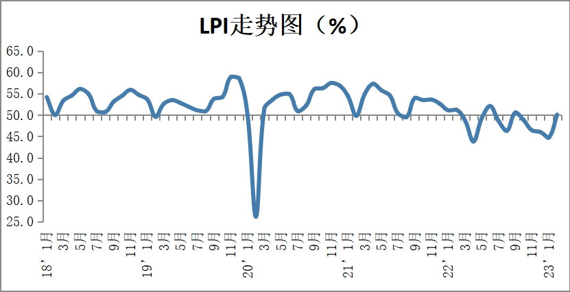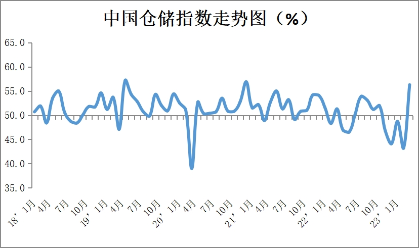 中國物流與采購聯合會發布的2023年2月份中國物流業景氣指數為50.1%,較上月回升5.4個百分點;中國倉儲業指數為56.3%,較上月回升13.1個百分點。