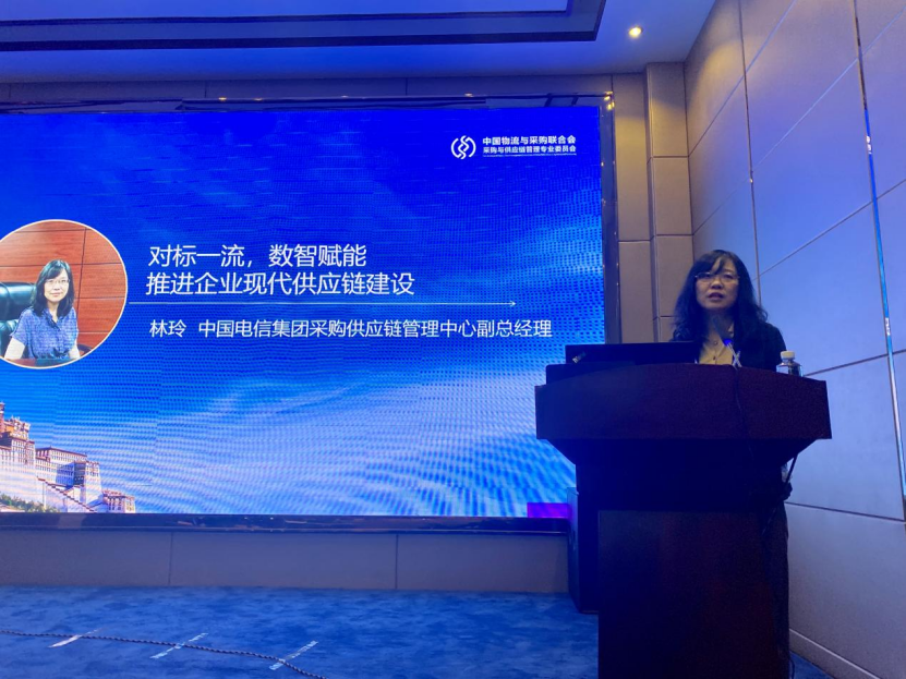 在赴中國電信調研之前,林玲就“對標一流,數智賦能 推進企業現代供應鏈建設”主題進行了經驗分享。她介紹說,中國電信的供應鏈特點包括:發揮全網集約優勢,強化專業創新機制,增強主實協同能力,共享生態合作成果。中國電信從提升供應鏈韌性與安全、服務企業科技創新和建設綠色供應鏈等方面進行了積極探索;此外,還通過數智賦能,在推進供應鏈全面數字化轉型升級方面積累了豐富的經驗。