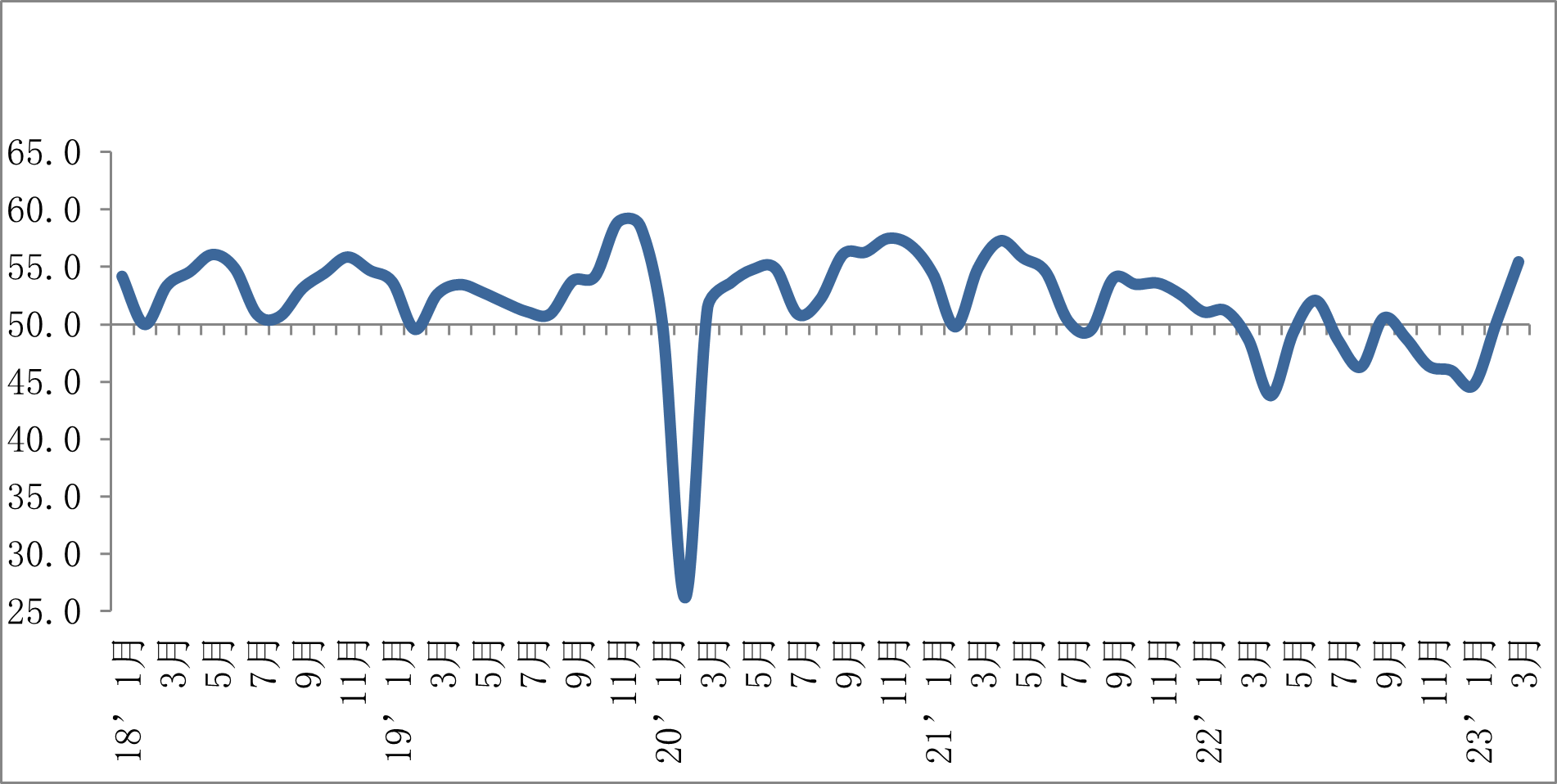 中國物流與采購聯合會發布的2023年4月份中國物流業景氣指數為53.8%,環比回落1.7個百分點。分項指數中,業務量指數和新訂單指數沖高回落,企業庫存周轉、資金利用、設備使用、固定投資和未來預期相關的指標繼續處于擴張區間。