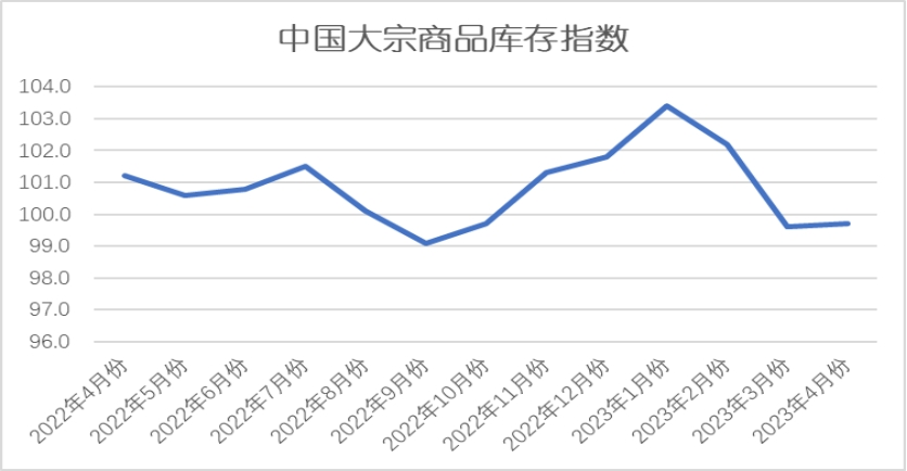 由中國物流與采購聯合會調查、發布的2023年4月份中國大宗商品指數(CBMI)為100.3%,較上月回落3.1個百分點,指數在連續兩個月上升后出現回落。各分項指數中,供應指數、銷售指數雙雙回落,且供應指數跌幅更大,庫存指數觸底回升。從本月指數的變化情況來看,國內大宗商品市場旺季不旺,供需雙側顯現轉弱跡象,市場運行壓力加大。進入5月份以后,隨著經濟穩步修復,需求側改善也在逐步顯現。特別是在穩經濟一攬子政策有力支持下,國內生產持續加快恢復,后市經濟具備更強的回穩動力和更大的回升空間。從全國范圍看,供需基本面有望得到一定改善,預計需求端表現將好于4月份,在各方因素影響下,我們認為5月份國內大宗商品市場有望在充分調整后逐步企穩,并具有一定的反彈動能。