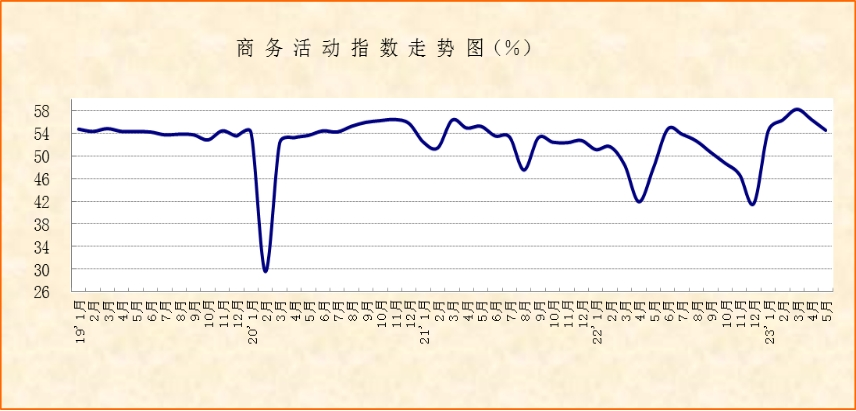 中國物流與采購聯合會、國家統計局服務業調查中心發布的2023年5月份中國非制造業商務活動指數為54.5%,較上月下降1.9個百分點;新訂單指數為49.5%,較上月下降6.5個百分點,兩指數均是連續2個月環比下降,對比來看,我國非制造業經營活動仍保持恢復態勢,動能有所放緩;但需求端前期集中釋放后,新增需求接續力度有所不足。
