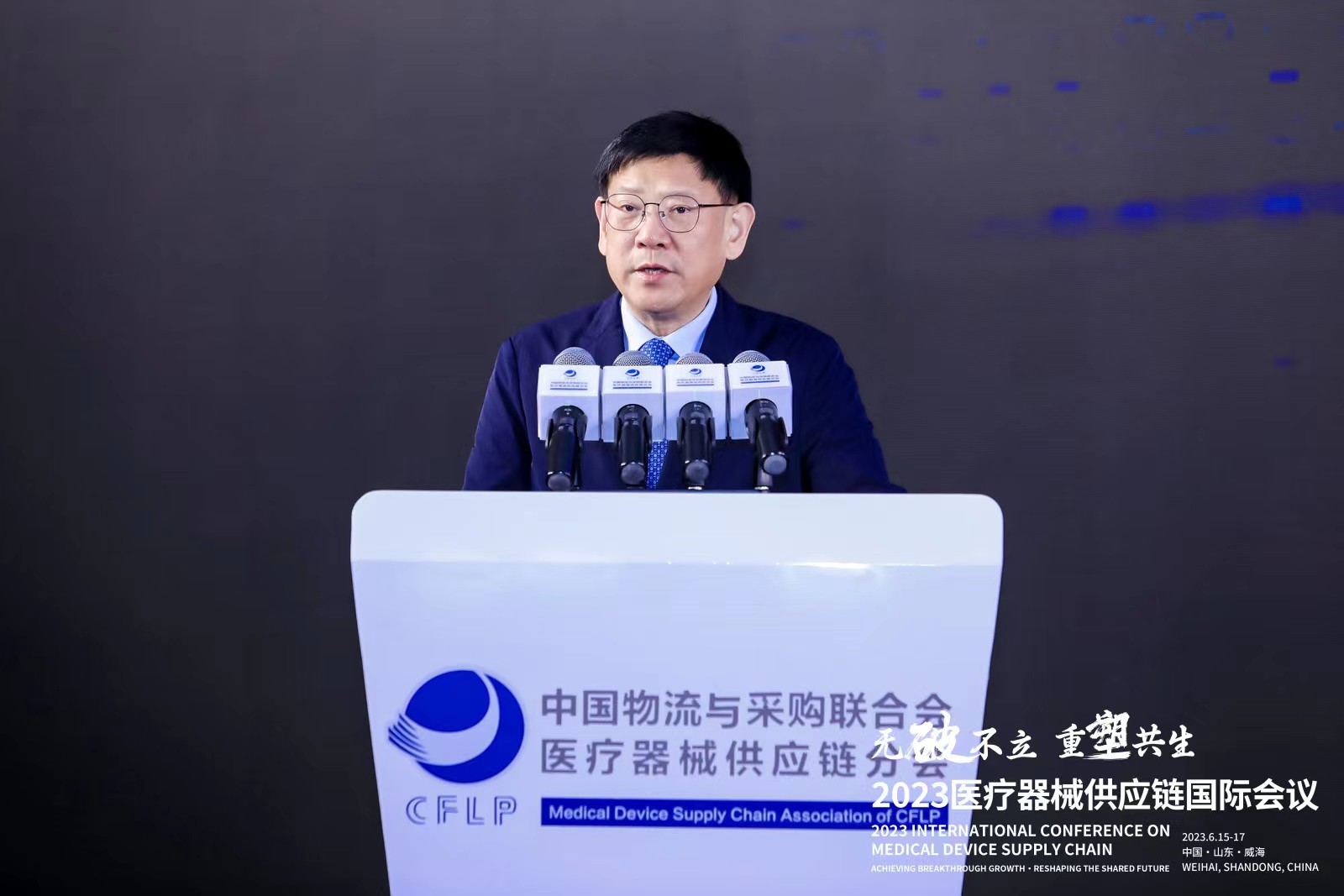 很高興與各位相聚美麗的濱海城市威海,共同召開“2023第三屆醫(yī)療器械供應(yīng)鏈國(guó)際會(huì)議”,我謹(jǐn)代表主辦方中國(guó)物流與采購聯(lián)合會(huì)向與會(huì)的各位嘉賓和代表表示熱烈的歡迎,同時(shí)對(duì)威高集團(tuán)有限公司、九州通醫(yī)藥集團(tuán)股份有限公司對(duì)本次大會(huì)的支持表示衷心的感謝。本次大會(huì)以“無破不立·重塑共生”為主題,共議新時(shí)期全球醫(yī)療器械供應(yīng)鏈高質(zhì)量發(fā)展之道。