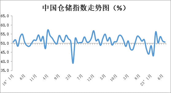 中國物流與采購聯合會發布的2023年6月份中國物流業景氣指數為51.7%,較上月回升0.2個百分點;中國倉儲業指數為50.7%,較上月下降0.6個百分點。