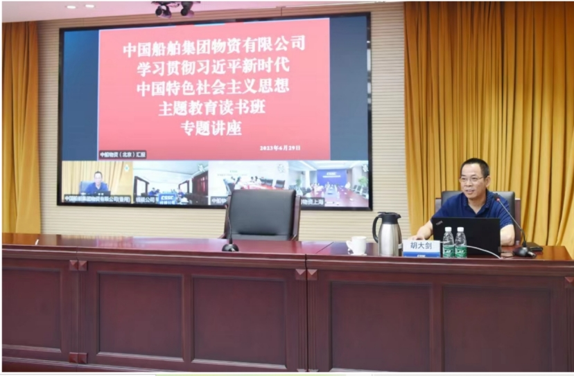 根據(jù)學習貫徹習近平新時代中國特色社會主義思想主題教育計劃安排,中國船舶集團物資有限公司圍繞“科技創(chuàng)新與自主可控專題——加快建設(shè)智慧供應(yīng)鏈,著力提升船舶產(chǎn)業(yè)鏈供應(yīng)鏈韌性和安全”舉行了主題教育讀書班。6月29日,中國物流與采購聯(lián)合會第六黨支部書記、中國物流與采購聯(lián)合會會長助理胡大劍為中國船舶集團物資有限公司全體中層以上干部進行專題授課。