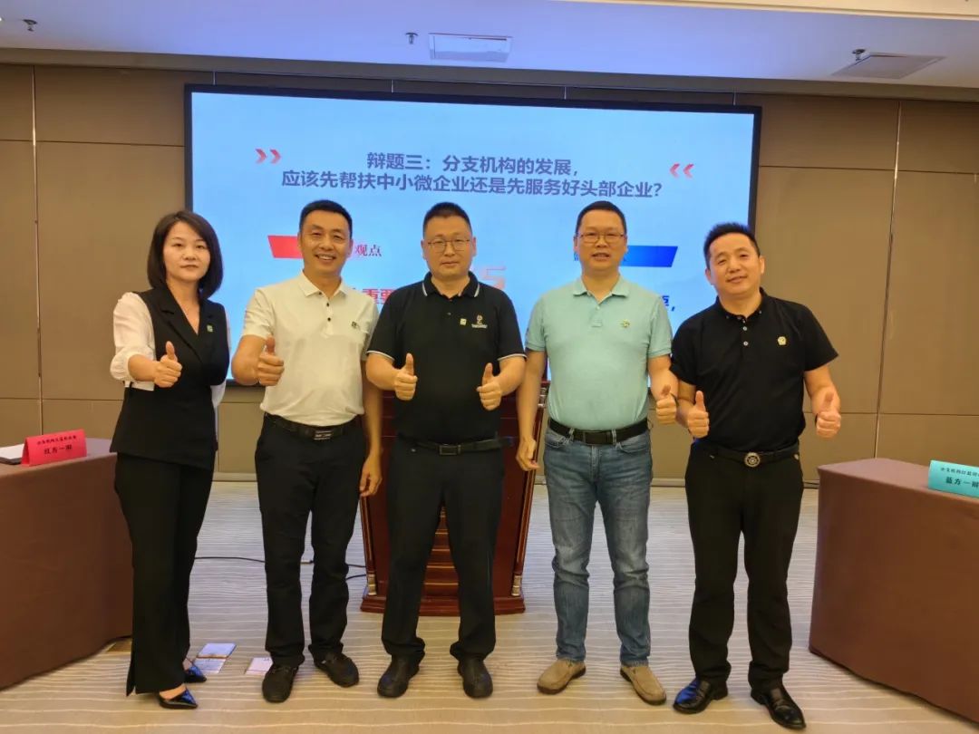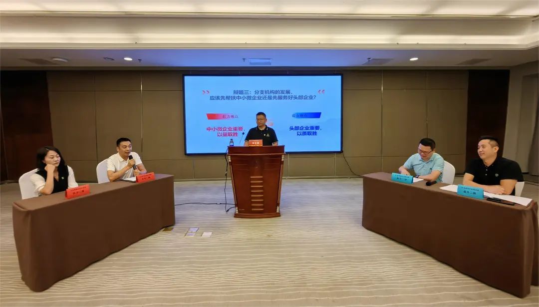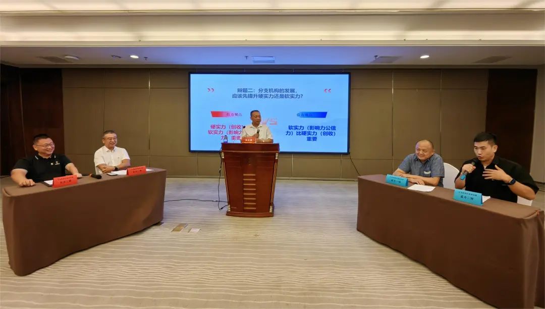 在最為精彩的分支機(jī)構(gòu)紅藍(lán)辯論賽環(huán)節(jié),共三場辯論,三個辯題,三位主持人,紅藍(lán)方各兩名辯手進(jìn)行辯論,最后由評審團(tuán)打分評選出勝方獎和最佳辯手獎。