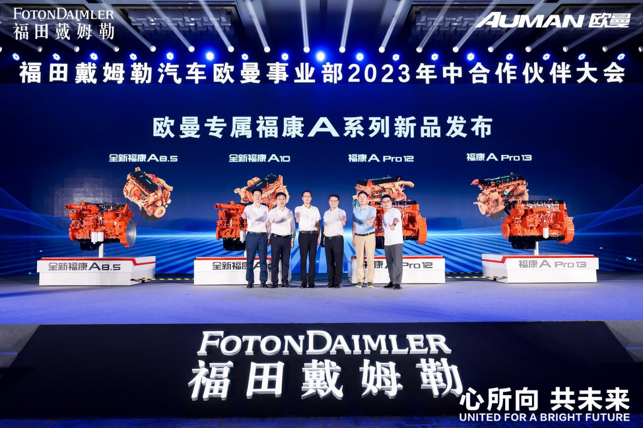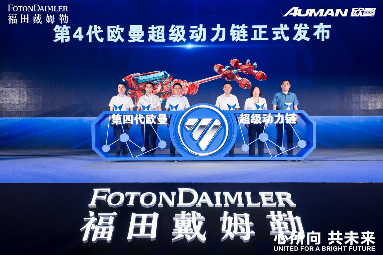 任豪祥與企業嘉賓共同發布了第四代歐曼超級動力鏈,中國物流與采購聯合會酒類物流供應鏈分會相關負責人參與發布歐曼專屬福康A系列新品。