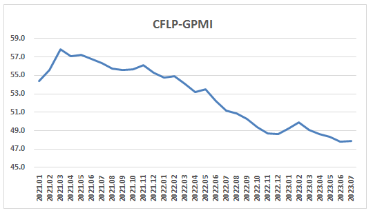 2023年7月份,非洲制造業PMI為49.1%,較上月下降0.7個百分點,連續2個月下降且在50%以下水平,顯示非洲制造業近期走勢有所放緩。從主要國家看,尼日利亞制造業增速繼續放緩,但仍保持增長,制造業PMI仍在50%以上;埃及制造業降幅收窄,PMI較上月微幅上升,但仍在50%以下;南非制造業繼續下行,PMI在48%以下的低位進一步下降。