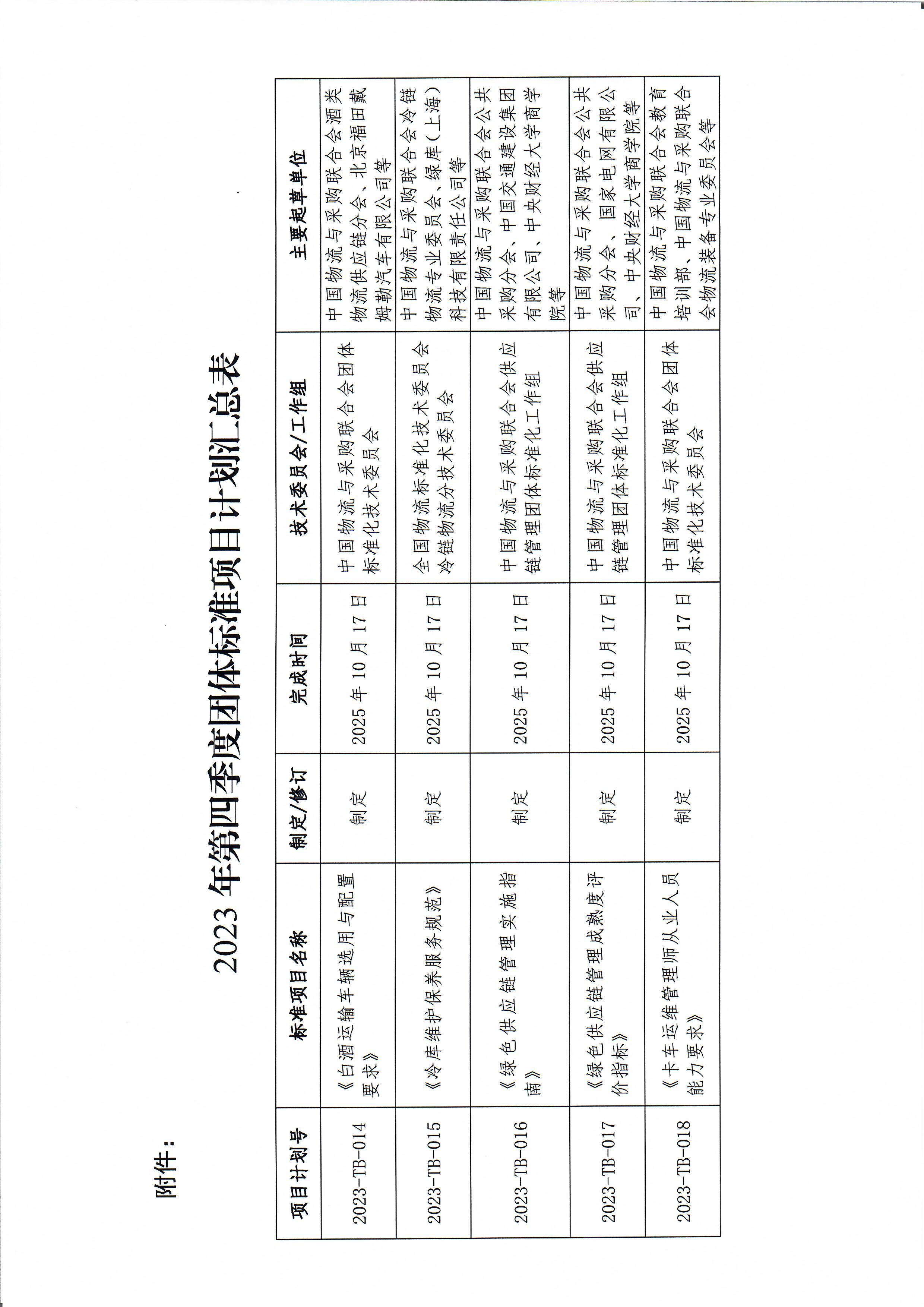 中物聯(lián)印發(fā)2023年第四季度團(tuán)體標(biāo)準(zhǔn)項(xiàng)目計(jì)劃