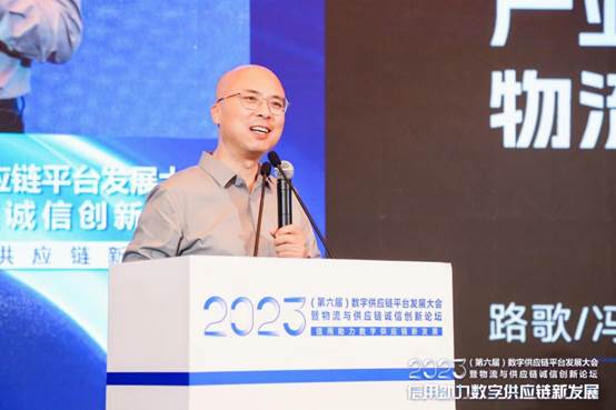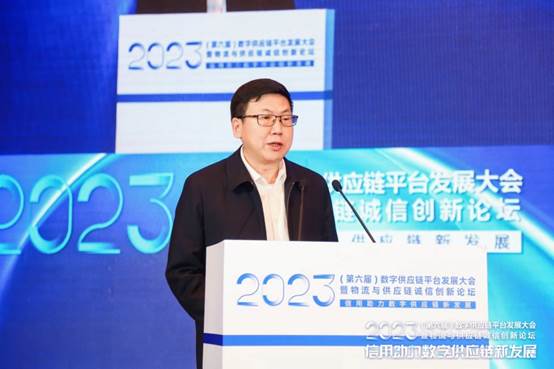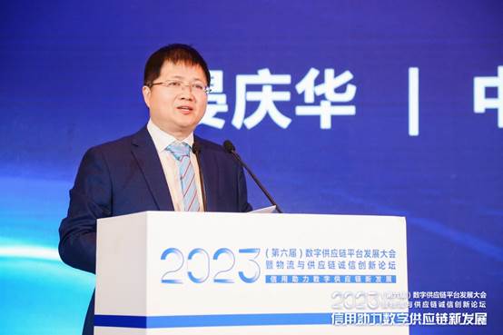 崔忠付致辭并作主旨報告《信用助力數字供應鏈新發展》。他在報告中指出,近年來,全球產業鏈加速重構,新一輪科技革命要求加快現代供應鏈創新與業態升級。在此背景下,數字供應鏈平臺應運而生并進入發展快車道:服務模式不斷創新、技術應用不斷深入,市場規模不斷擴大;同時面臨諸多挑戰:數據流轉效率、安全可信水平均亟待提升,數字化基礎薄弱導致供應鏈管理能力不足,供應鏈金融風險也難以把控。行業領先企業中儲智運升級打造數字供應鏈平臺,為破解行業痛點做出不懈努力。同時,中物聯圍繞物流供應鏈平臺信用體系建設制定了相關團體標準,為降低供應鏈金融風險提供技術支撐;未來將進一步完善行業信用體系建設,助力數字供應鏈深入發展。