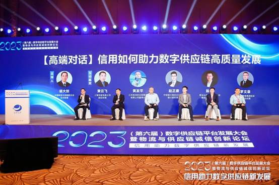 大會的最后一個環節是以“信用如何助力數字供應鏈高質量發展”為主題的高端對話,對話由胡大劍主持。上海華能電商公司副總經理黃云飛,江蘇恒鴻供應鏈管理有限公司董事長黃發平,中信銀行南京分行交易銀行部負責人趙正康;歐冶云商股份有限公司物流中心副總經理陳煜,內蒙古伊泰集團招采中心總經理羅文章五位對話嘉賓分別介紹了各自企業打造數字化供應鏈中的實踐經驗和面臨的挑戰,并圍繞信用建設對數字供應鏈平臺的重要作用,如何評估、管控信用,跨越信用變現等痛點;銀企對接及未來發展趨勢等熱點話題進行了熱烈探討。