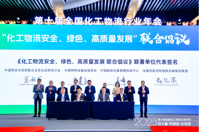 年會期間,進行了《化工物流安全、綠色、高質量發展聯合倡議》聯署單位代表簽名環節,舉行了化工產業與運力融合協同分論壇、化工倉儲發展與運營管理分論壇、化工物流供應鏈創新發展分論壇、化工水運發展與運營管理分論壇四場分論壇,還舉行了第十屆全國化工物流行業年會的前瞻論壇,發布了《2023年度中國?;肺锪餍袠I發展報告》。