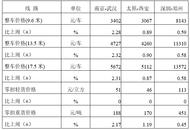 表1 本周部分線路平均價格及環(huán)比情況對比