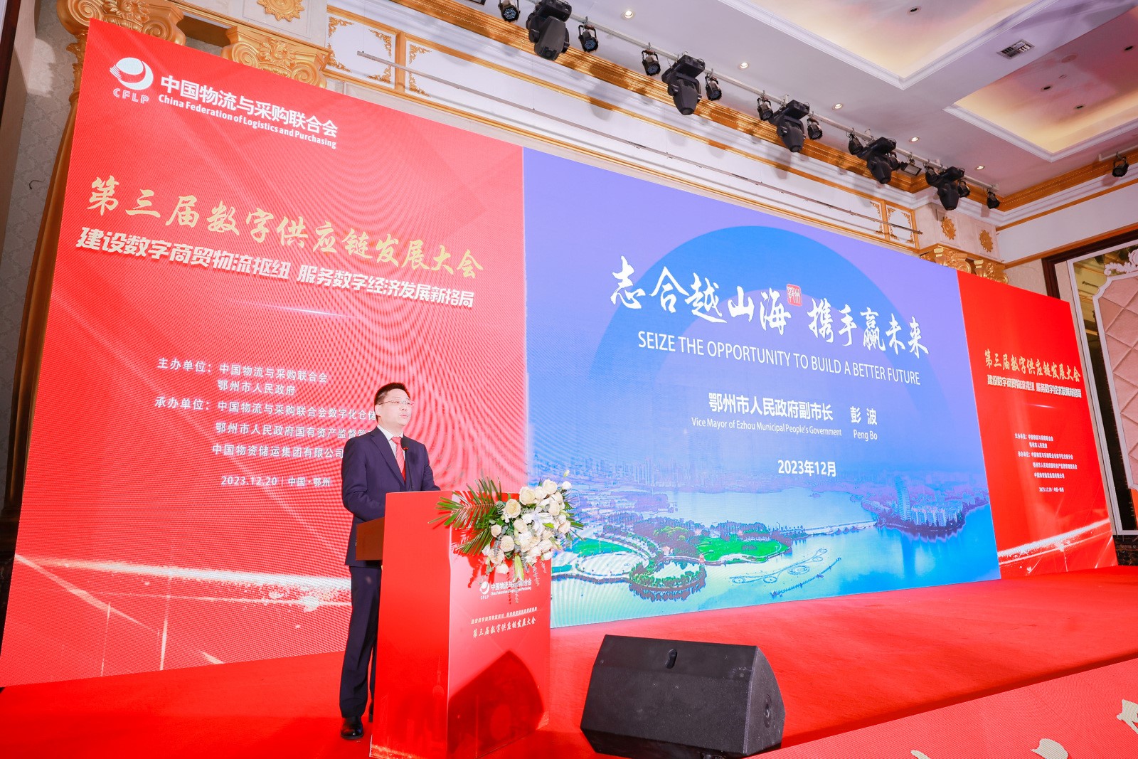 2023年12月19—21日,由中國物流與采購聯合會與鄂州市人民政府聯合主辦,中國物流與采購聯合會數字化倉儲分會、中國物資儲運集團有限公司承辦的第三屆數字供應鏈發展大會在湖北鄂州舉行。中國物流與采購聯合會副會長蔡進,鄂州市委副書記、市長王璽瑋,鄂州市副市長彭波,中國航空學會飛行器適航分會主任委員徐超群,中國物資儲運集團有限公司執行董事、總經理房永斌出席會議。蔡進、王璽瑋、彭波、徐超群、房永斌致開幕辭,開幕式由中國物流采購聯合會數字化倉儲分會秘書長呂忠主持.