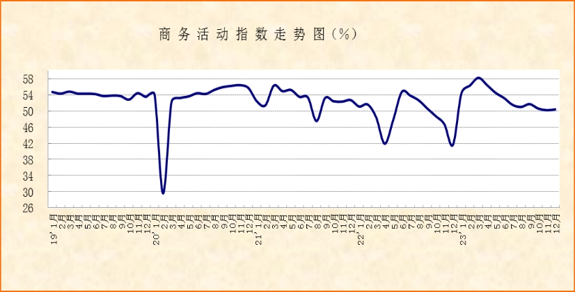 中國(guó)物流與采購(gòu)聯(lián)合會(huì)、國(guó)家統(tǒng)計(jì)局服務(wù)業(yè)調(diào)查中心發(fā)布的2023年12月份中國(guó)非制造業(yè)商務(wù)活動(dòng)指數(shù)為50.4%,較上月上升0.2個(gè)百分點(diǎn),四季度以來(lái),連續(xù)3個(gè)月穩(wěn)定在50%以上;新訂單指數(shù)為47.5%,較上月上升0.3個(gè)百分點(diǎn),連續(xù)2個(gè)月環(huán)比上升,顯示四季度非制造業(yè)經(jīng)營(yíng)活動(dòng)保持小幅增長(zhǎng)態(tài)勢(shì),需求呈現(xiàn)持續(xù)恢復(fù)趨勢(shì)。結(jié)合分項(xiàng)指數(shù)和行業(yè)指數(shù)變化來(lái)看,四季度,伴隨著非制造業(yè)的穩(wěn)步恢復(fù),經(jīng)濟(jì)內(nèi)生增長(zhǎng)動(dòng)能正在積聚。主要表現(xiàn)在銷售價(jià)格與就業(yè)活動(dòng)有趨穩(wěn)跡象,企業(yè)預(yù)期持續(xù)向好,年底投資需求加速釋放跡象顯現(xiàn),金融支持實(shí)體經(jīng)濟(jì)力度進(jìn)一步增強(qiáng)。
