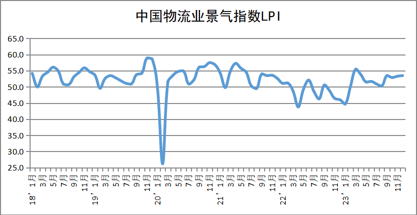 中國物流與采購聯合會發布的2023年12月份中國物流業景氣指數為53.5%,較上月回升0.2個百分點;中國倉儲指數為51.6%,較上月回落0.6個百分點。