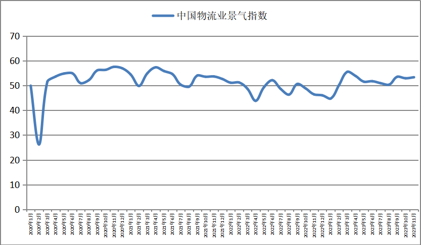 中國物流與采購聯(lián)合會發(fā)布的2023年12月份中國物流業(yè)景氣指數(shù)為53.5%,環(huán)比回升0.2個百分點。12月份物流景氣保持穩(wěn)中有升,主要指標(biāo)中業(yè)務(wù)總量指數(shù)、新訂單指數(shù)、資金周轉(zhuǎn)率指數(shù)、固定資產(chǎn)投資完成額指數(shù)、從業(yè)人員指數(shù)、業(yè)務(wù)活動預(yù)期指數(shù)均處于擴張區(qū)間,反映出本月物流運行基本態(tài)勢向好,業(yè)務(wù)量有所增長,新增訂單需求平穩(wěn),微觀盈利改善。全年來看大部分分項指標(biāo)年度均值高于上年,穩(wěn)中向好發(fā)展局面進一步穩(wěn)固。