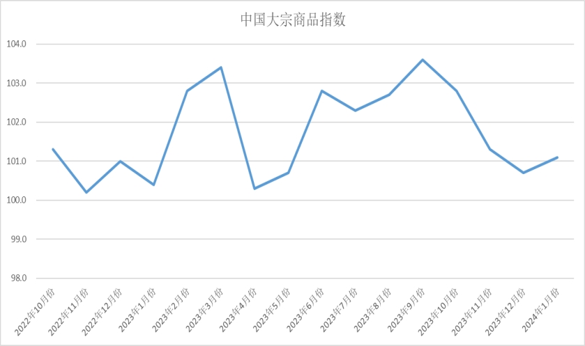 由中國物流與采購聯合會調查、發布的2024年1月份中國大宗商品指數(CBMI)為101.1%,較上月回升0.4個百分點。分項指數顯示,供應量、銷售量及庫存量均呈上升走勢,其中供應量升幅擴大,銷售量升幅有所收窄,庫存量轉降為升。從市場來看,大宗商品冬儲需求繼續拉動銷售量上升,但由于終端對商品高價接受度一般,部分商品的高估值面臨向下修復,加之受天氣因素影響需求并未大范圍釋放,銷售量升幅有所收窄。從供應端來看,由于全球多地局勢緊張、部分商品估值走高帶來的利潤刺激,以及多地積極抓項目拉動基礎原材料市場需求,大宗商品的供應升幅擴大。庫存轉降為升,主要是生產、流通環節庫存增長較多,后期隨著需求和物流的逐漸恢復,市場庫存壓力有望有所緩解。