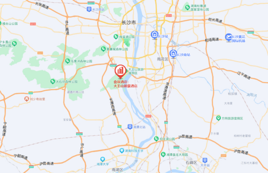 長沙南站→ 大王山朗豪酒店:長沙站距離酒店約22公里