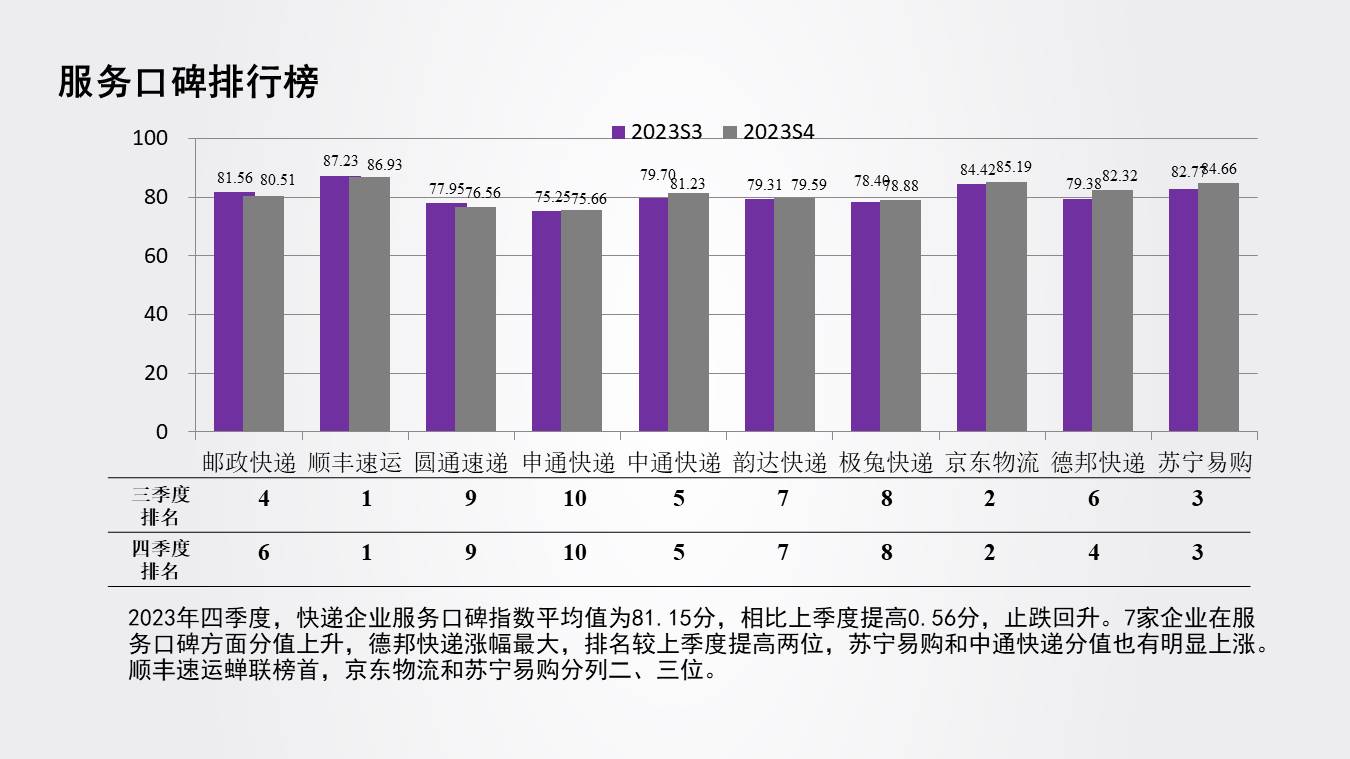 中國物流服務品牌指數(快遞物流)報告2023年四季度