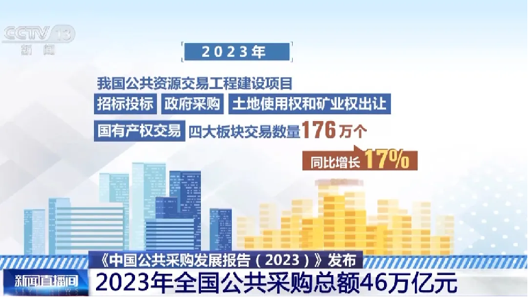 根據報告,2023年在有效需求不足的情況下,我國公共采購市場將“真金白銀”用于發展緊要處、民生急需上,全年公共采購總額46萬億元,有效保障了國民經濟發展的需要。