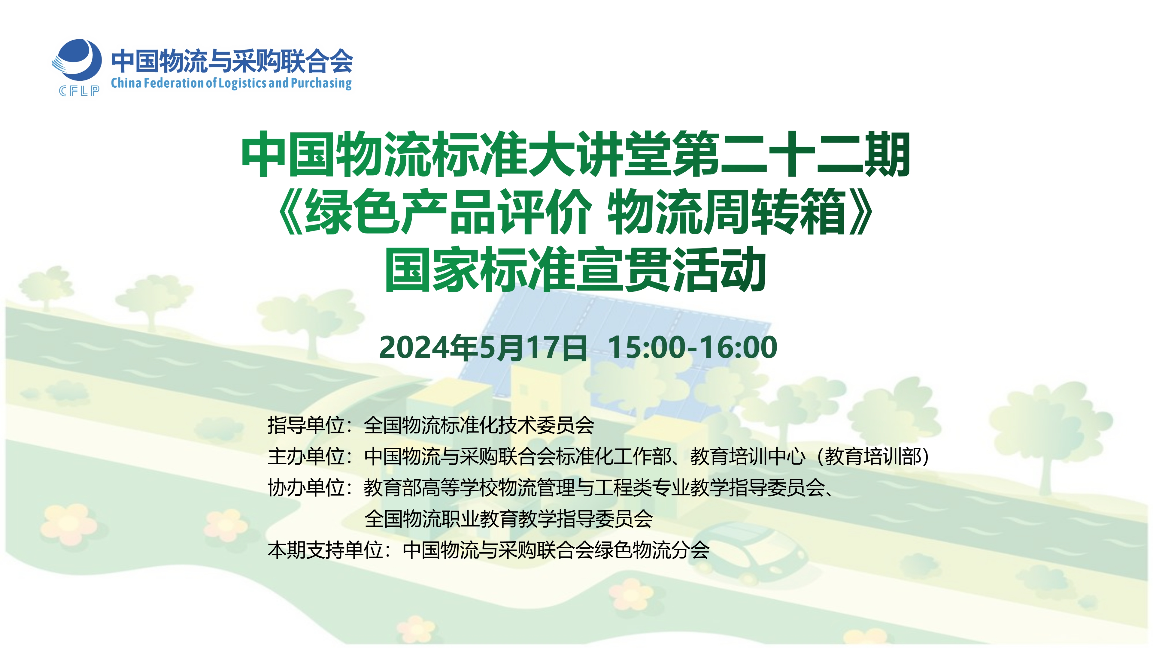 2024年5月17日,“中國(guó)物流標(biāo)準(zhǔn)大講堂22期:《綠色產(chǎn)品評(píng)價(jià) 物流周轉(zhuǎn)箱》標(biāo)準(zhǔn)宣貫”通過(guò)線上方式成功舉辦,2000余人參加了宣貫活動(dòng)。
