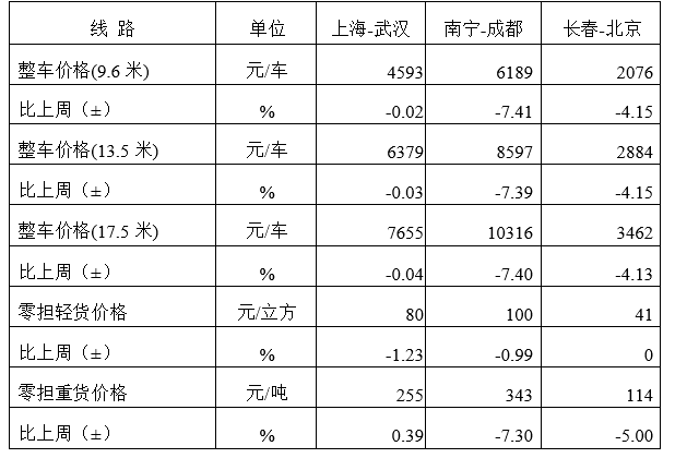 表1 本周部分線路平均價格及環(huán)比情況對比