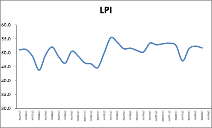 中國物流與采購聯合會發布的2024年6月份中國物流業景氣指數為51.6%,環比回落0.2個百分點。分項指數中業務總量指數、新訂單指數和業務活動預期指數保持景氣區間,服務價格指數環比平穩回升。