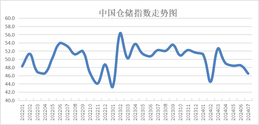 中國物流與采購聯合會和中儲發展股份有限公司聯合調查的中國倉儲指數,2024年7月份為46.5%,較上月回落2個百分點,在收縮區間繼續下降,新訂單、期末庫存、業務利潤等主要分項指數均有明顯回落,表明需求不足問題仍然較為突出,貨品周轉速度減慢,企業補貨意愿下降,庫存水平繼續降低,行業運行仍面臨一定下行壓力。不過,本月消費品業務活動表現相對較好,同時業務活動預期指數有所回升,企業預期相對樂觀,后期行業需求有望趨穩回升。具體來看,本月指數有以下幾個特點: