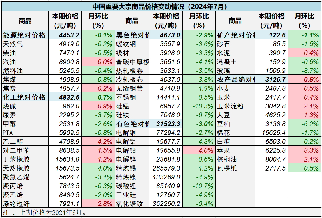 分商品看:在中國(guó)物流與采購(gòu)聯(lián)合會(huì)重點(diǎn)監(jiān)測(cè)的50種大宗商品中,本月價(jià)格與上月相比,35種(70%)大宗商品價(jià)格下跌,15種(30%)大宗商品價(jià)格上漲。其中,漲幅前三的為蘋果、乙二醇和電解鉛,月環(huán)比分別上漲8.3%、4.2%和4%;跌幅前三的大宗商品為碳酸鋰、硅錳和玻璃,月環(huán)比分別下跌10.7%、10.3%和8.7%。