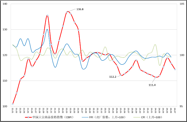 - 2024年10月份中國(guó)大宗商品價(jià)格指數(shù)(CBPI)為113.4點(diǎn),環(huán)比回升3%