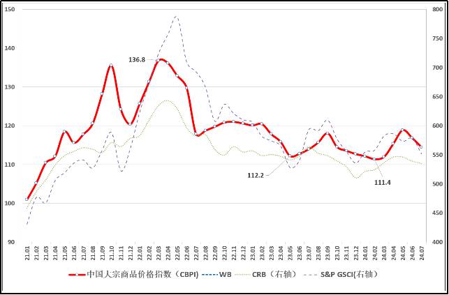 由中物聯(lián)大宗分會(huì)和上海鋼聯(lián)等單位聯(lián)合調(diào)查,中國(guó)物流與采購(gòu)聯(lián)合會(huì)發(fā)布的2024年7月份中國(guó)大宗商品價(jià)格指數(shù)(CBPI)為114.5點(diǎn),環(huán)比回落2%,同比上漲0.4%。從指數(shù)運(yùn)行情況來(lái)看,7月份CBPI雖受傳統(tǒng)生產(chǎn)淡季、極端天氣等季節(jié)性因素影響回落,但仍高于1-6月平均水平,表明隨宏觀組合政策實(shí)施力度不斷加大,大宗市場(chǎng)持續(xù)穩(wěn)定恢復(fù),總體保持?jǐn)U張態(tài)勢(shì)。從同比看,指數(shù)連續(xù)三個(gè)月實(shí)現(xiàn)正增長(zhǎng),也表明企業(yè)預(yù)期樂(lè)觀,經(jīng)營(yíng)狀況持續(xù)改善。下半年,隨穩(wěn)投資和促消費(fèi)相關(guān)政策繼續(xù)加快落地,大宗市場(chǎng)整體有望繼續(xù)平穩(wěn)向好。從國(guó)內(nèi)外大宗指數(shù)走勢(shì)來(lái)看,全球經(jīng)濟(jì)增長(zhǎng)仍面臨市場(chǎng)需求偏弱、地緣政治緊張,以及全球貿(mào)易格局重塑等下行壓力和不確定因素,鞏固增強(qiáng)我國(guó)大宗市場(chǎng)回升向好態(tài)勢(shì),仍需進(jìn)一步發(fā)揮市場(chǎng)機(jī)制作用,創(chuàng)造更加公平、更有活力的市場(chǎng)環(huán)境,充分激發(fā)經(jīng)濟(jì)增長(zhǎng)內(nèi)生動(dòng)力和創(chuàng)新活力。