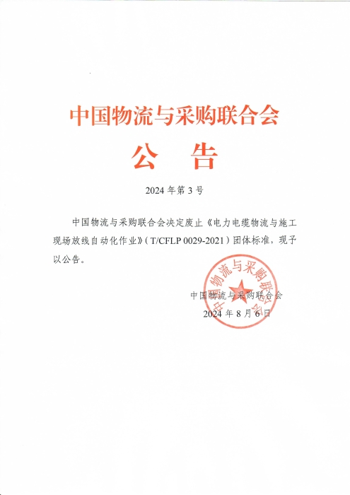 中物聯(lián)廢止一項(xiàng)團(tuán)體標(biāo)準(zhǔn)