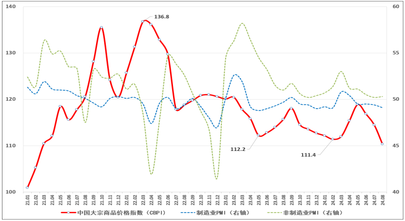 由中物聯(lián)大宗分會和上海鋼聯(lián)等單位聯(lián)合調(diào)查,中國物流與采購聯(lián)合會發(fā)布的2024年8月份中國大宗商品價(jià)格指數(shù)(CBPI)為110.3點(diǎn),環(huán)比下跌3.6%,同比下跌4.6%。從指數(shù)運(yùn)行情況來看,8月份CBPI受全球高溫多雨天氣、部分行業(yè)生產(chǎn)淡季,以及金融市場劇烈振蕩等因素影響,大宗市場季節(jié)性階段性波動特征明顯,隨著進(jìn)入“金九銀十”生產(chǎn)建設(shè)旺季,各項(xiàng)宏觀調(diào)控政策的落實(shí)到位,預(yù)計(jì)市場需求將逐步回暖。從國內(nèi)外大宗商品指數(shù)走勢來看,企業(yè)生產(chǎn)成本壓力有所緩解,同時(shí)美聯(lián)儲降息預(yù)期可能性增大也對大宗商品價(jià)格形成支撐,預(yù)計(jì)市場下行空間有限,但有效需求不足、企業(yè)經(jīng)營壓力較大等問題仍比較突出,流通業(yè)在引導(dǎo)生產(chǎn)、促進(jìn)消費(fèi)中的作用仍有待進(jìn)一步發(fā)揮。