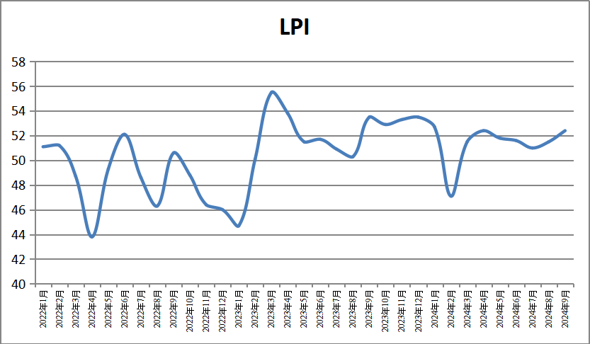 中國物流與采購聯合會發布的2024年9月份中國物流業景氣指數為52.4%,環比回升0.9個百分點。9月份,供應鏈上下游進一步復蘇,公路、鐵路、航空和電商快遞等物流實物量穩步增長,業務總量指數、新訂單指數、業務活動預期指數連續回升,保持擴張區間運行,反映三季度以來物流供需保持適配增長、內生動力韌性回升,物流“金九”如期而至。