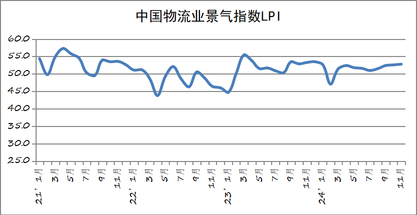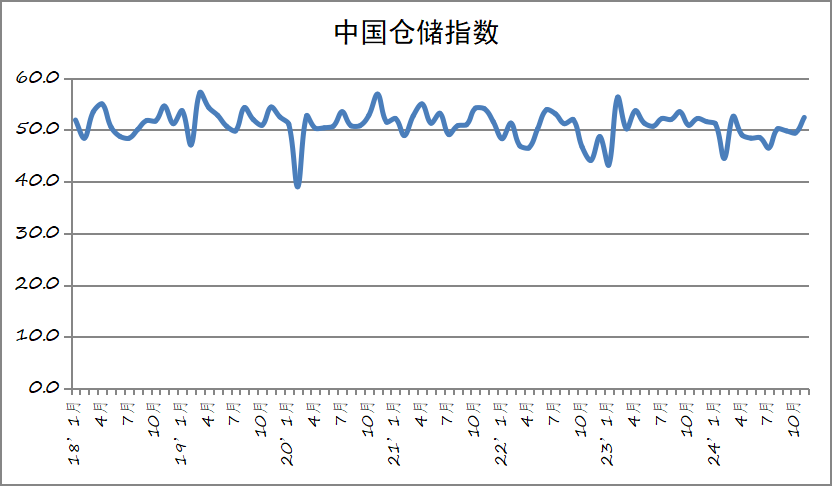 中國物流與采購聯(lián)合會發(fā)布的2024年11月份中國物流業(yè)景氣指數(shù)為52.8%,較上月回升0.2個百分點;中國倉儲指數(shù)為52.4%,較上月回升3個百分點。