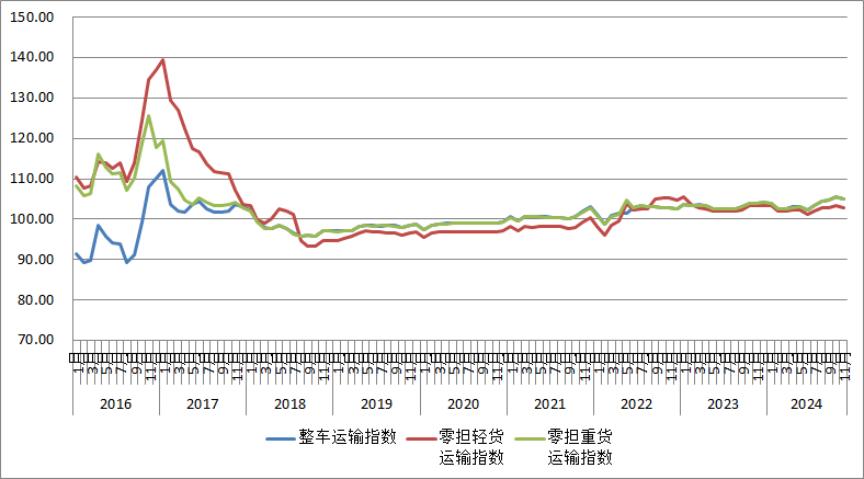 零擔輕貨指數 | 102.5 | 102.8 | -0.58 |