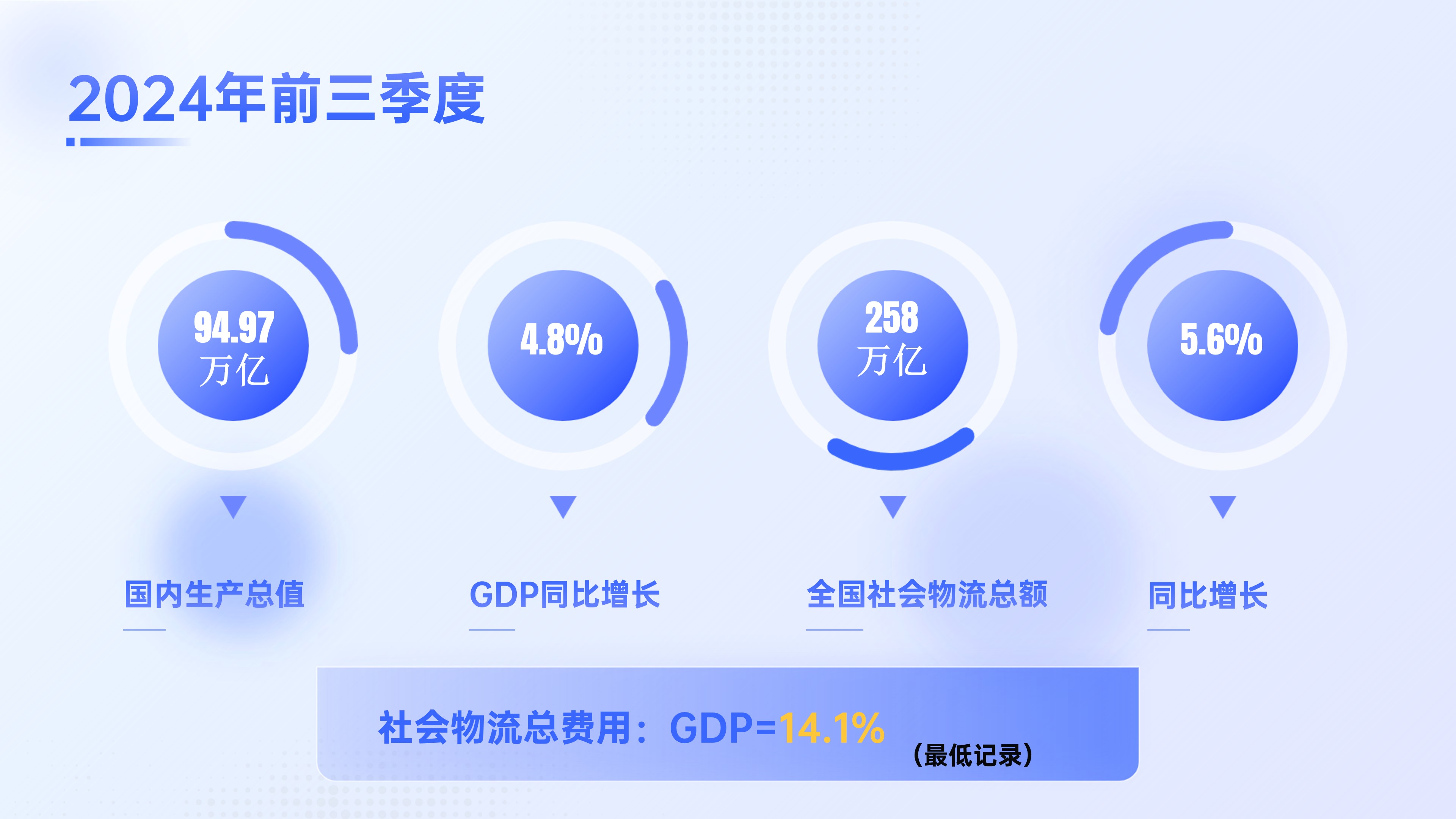 近日召開的中央經(jīng)濟(jì)工作會(huì)議指出,我國(guó)經(jīng)濟(jì)基礎(chǔ)穩(wěn)、優(yōu)勢(shì)多、韌性強(qiáng)、潛能大,長(zhǎng)期向好的支撐條件和基本趨勢(shì)沒有變,必須統(tǒng)籌好培育新動(dòng)能和更新舊動(dòng)能的關(guān)系,因地制宜發(fā)展新質(zhì)生產(chǎn)力。物流業(yè)作為國(guó)民經(jīng)濟(jì)發(fā)展的基礎(chǔ)性、戰(zhàn)略性、先導(dǎo)性產(chǎn)業(yè),是實(shí)體經(jīng)濟(jì)的“筋絡(luò)”。2024年前三季度,我國(guó)國(guó)內(nèi)生產(chǎn)總值(GDP)達(dá)到94.97萬億元,同比增長(zhǎng)4.8%。同期,全國(guó)社會(huì)物流總額達(dá)到258萬億元,同比增長(zhǎng)5.6%。社會(huì)物流總費(fèi)用與GDP的比率為14.1%,創(chuàng)物流統(tǒng)計(jì)制度以來的最低紀(jì)錄。這一成績(jī)的取得,充分體現(xiàn)了物流行業(yè)在提升效率、降低成本方面的顯著成效,標(biāo)志著我國(guó)物流行業(yè)正由高速發(fā)展向高質(zhì)量發(fā)展轉(zhuǎn)變,由物流大國(guó)向物流強(qiáng)國(guó)邁進(jìn)。