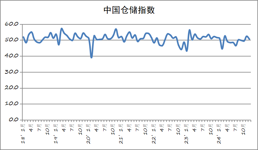 中國物流與采購聯合會發布的2024年12月份中國物流業景氣指數為53.1%,環比上升0.3個百分點;中國倉儲指數為50.6%,環比回落1.8個百分點。