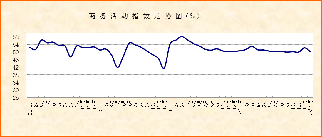 中國物流與采購聯合會、國家統計局服務業調查中心發布的2025年1月份中國非制造業商務活動指數為50.2%,較上月下降2個百分點,非制造業經營活動增速較上月有所放緩,但仍保持擴張態勢。