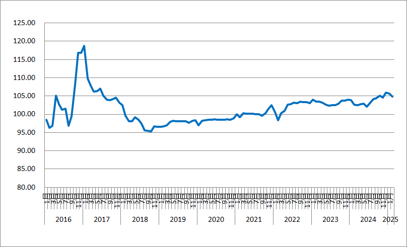 2025年2月份,由中國物流與采購聯合會和林安物流集團聯合調查的中國公路物流運價指數為104.8點,環比回落0.80%,同比去年回升2.21%。從月內看,第一、二、三周運價指數環比有所回升;第四周運價指數環比有所回落。