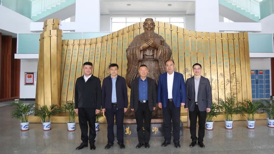 在膠州市職業教育中心,任豪祥在膠州市教育和體育局總督學孫科、膠州市職業教育中心學校黨委書記劉元福陪同下參觀了校史館和實訓車間,聽取了學校近年來在職業教育改革、校企合作以及產教融合方面的具體舉措和成效,雙方就3+2人才培訓體系建設、校企合作、“人工智能+職業教育”以及中物靈境大模型應用進行深入交流。