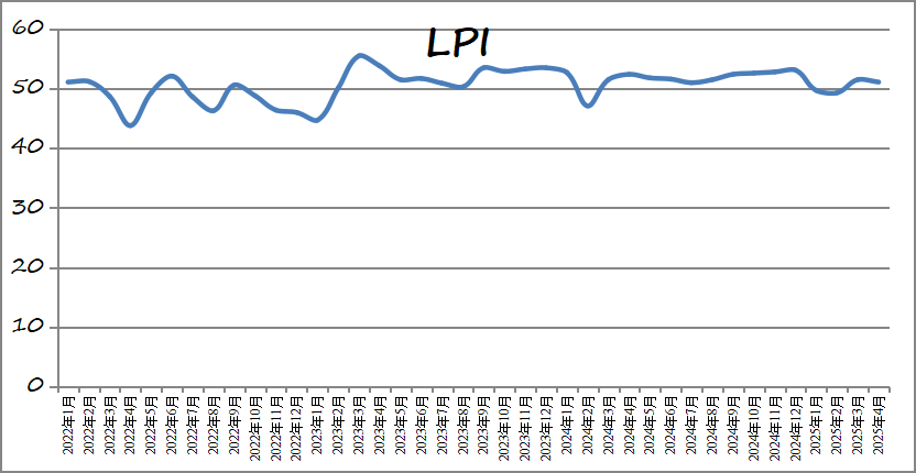 中國物流與采購聯合會發布的2025年4月份中國物流業景氣指數(LPI)為51.1%,環比回落0.4個百分點。其中,業務總量指數、新訂單指數、庫存周轉次數指數、資金周轉率指數、固定資產投資完成額指數、從業人員指數和業務活動預期指數保持在50%以上擴張區間。