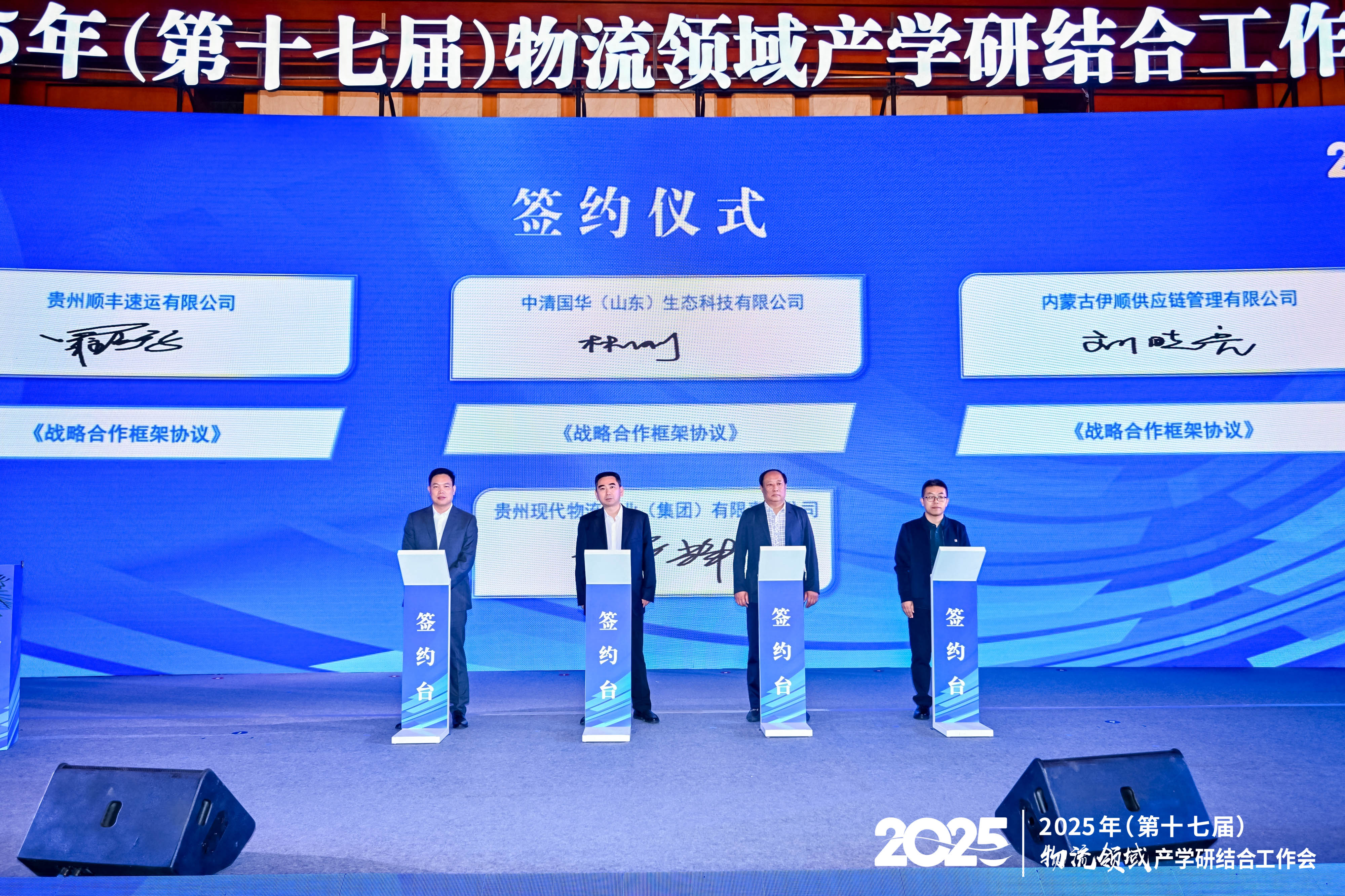 2025年5月9-11日,由中國物流學(xué)會、中國物流與采購聯(lián)合會主辦,貴州現(xiàn)代物流產(chǎn)業(yè)集團(tuán)承辦的2025年(第十七屆)物流領(lǐng)域產(chǎn)學(xué)研結(jié)合工作會在貴州貴陽召開。中國物流與采購聯(lián)合會黨委常委、中國物流學(xué)會會長任豪祥,貴州省發(fā)展和改革委員會黨組書記、主任邱禎國,貴陽市委常委、市政府黨組副書記、副市長范輝政出席會議并致辭。中國物流與采購聯(lián)合會副會長、中國物流學(xué)會副會長楊國棟,中國物流與采購聯(lián)合會總會計(jì)師鄭小寶,中國物流學(xué)會副會長兼秘書長郭肇明,中國物流與采購聯(lián)合會專家委員會主任、中國物流學(xué)會專家委員會主任賀登才參加會議。來自全國29個省區(qū)市物流領(lǐng)域政產(chǎn)學(xué)研各界領(lǐng)導(dǎo)、專家、學(xué)者、企業(yè)家及院校、研究機(jī)構(gòu)代表800余人參加會議。會議開幕式分別由郭肇明、楊國棟主持。