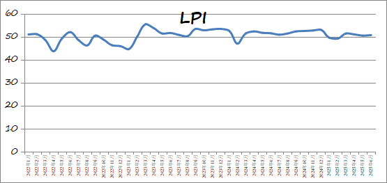 中國物流與采購聯合會發布的2025年6月份中國物流景氣指數(LPI)為50.8%,環比回升0.2個百分點。其中,業務總量指數、新訂單指數、庫存周轉次數指數、資金周轉率指數、固定資產投資完成額指數、從業人員指數和業務活動預期指數等關鍵指標仍處在擴張區間。