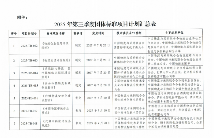 中物聯印發2025年第三季度團體標準項目計劃