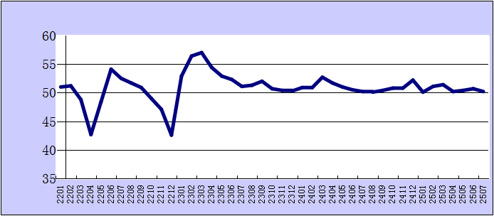 2025年7月份綜合PMI產(chǎn)出指數(shù)為50.2%